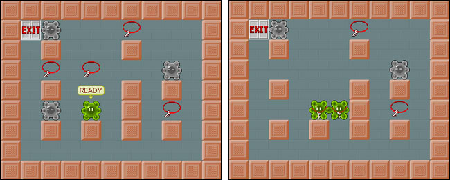 Jeder Level beginnt mit einem aktiven Männchen, und wenn es ein anderes Männchen berührt, verbinden sie sich und sie können sich nicht mehr trennen. Jedes Männchen kann nur einen Schlüssel aufsammeln. Sind alle Schlüssel aufgesammelt, muss der Spieler die Männchen zum Ausgang bringen.