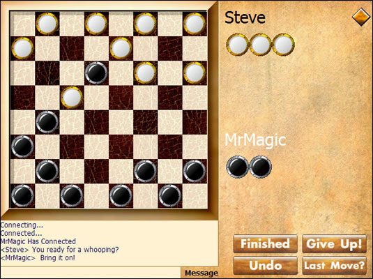 Dame in EchtzeitDiese Umsetzung hat die Besonderheit, dass man die Dame in Echtzeit online spielen kann gegen einen Gegner aus der ganzen Welt. Das Spiel bietet auch Online-Ranking und In-Game-Chat an.